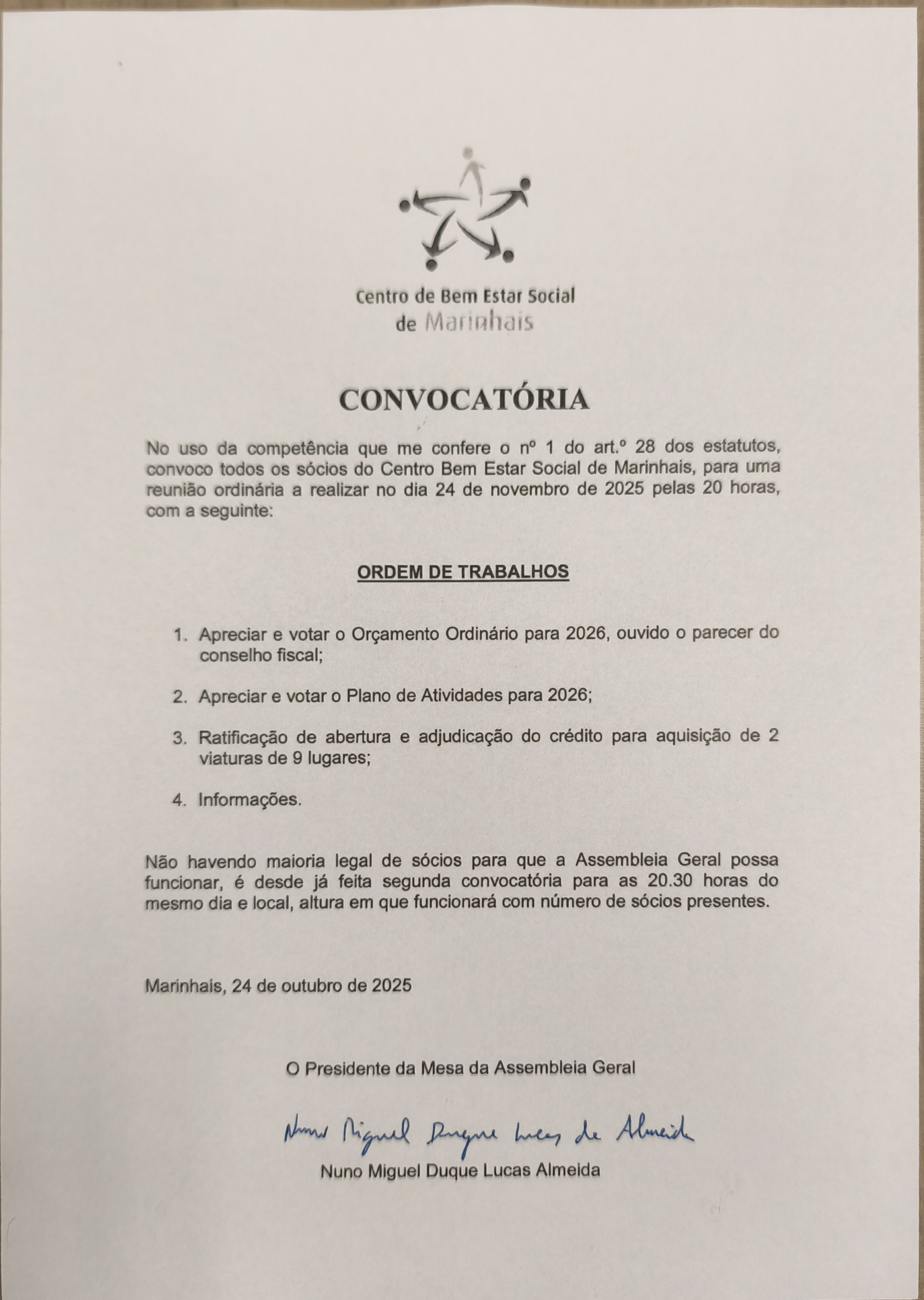 Convocatória Assembleia Geral de 27 de novembro de 2024
