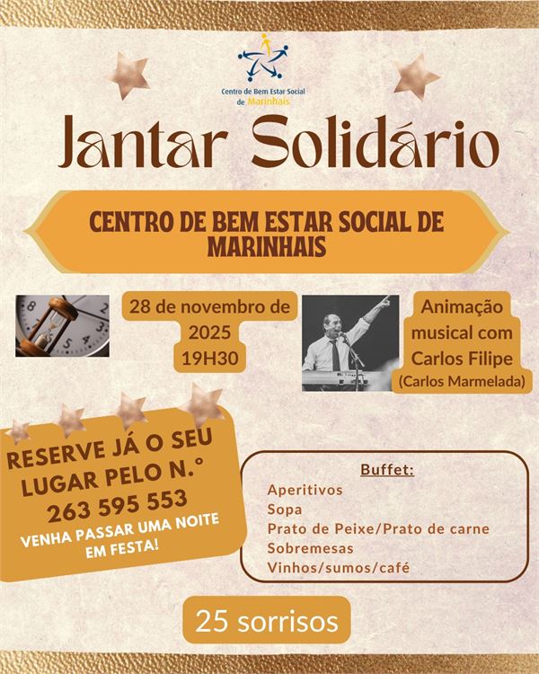 O CBESM vai abrir as portas à nossa Comunidade e irá dinamizar o Jantar Solidário do CBES Marinhais no dia 28/11/2025 que será realizado no edificio do Centro de Dia.